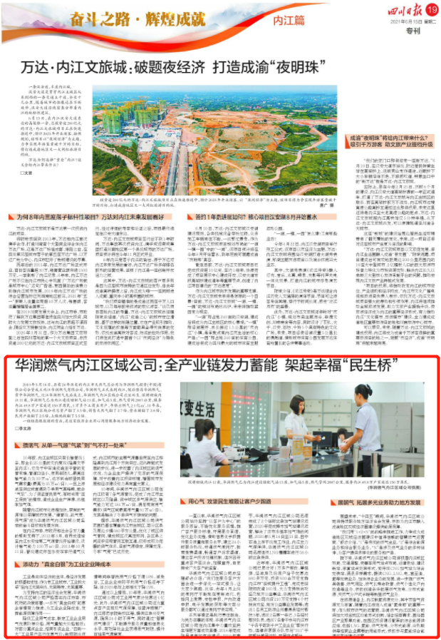 展望未來(lái),“十四五”期間,華潤(rùn)燃?xì)鈨?nèi)江區(qū)域公司將持續(xù)服務(wù)地方經(jīng)濟(jì)社會(huì)發(fā)展,積極為內(nèi)江市融入成渝地區(qū)雙城經(jīng)濟(jì)圈建設(shè)提供能源保障。