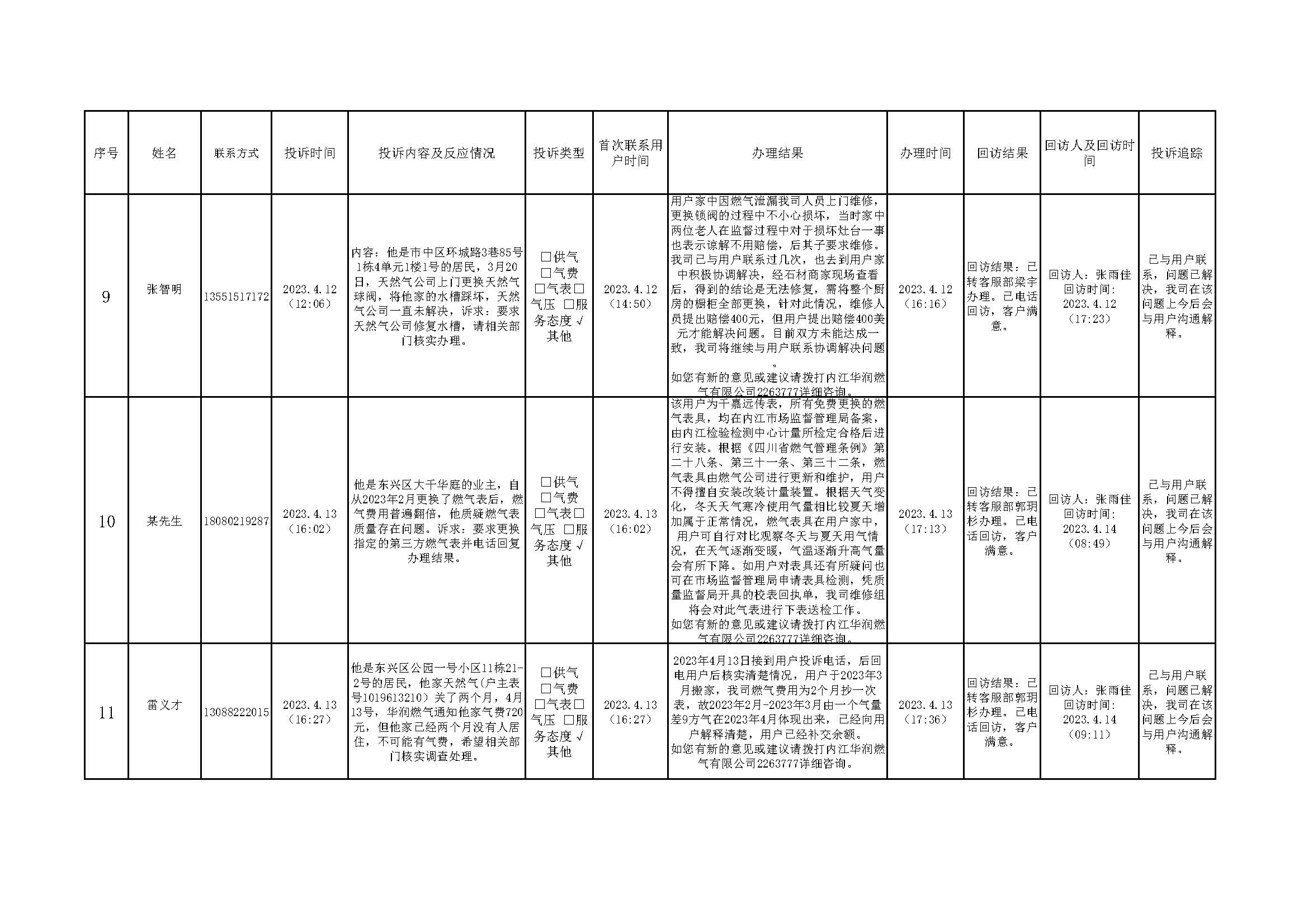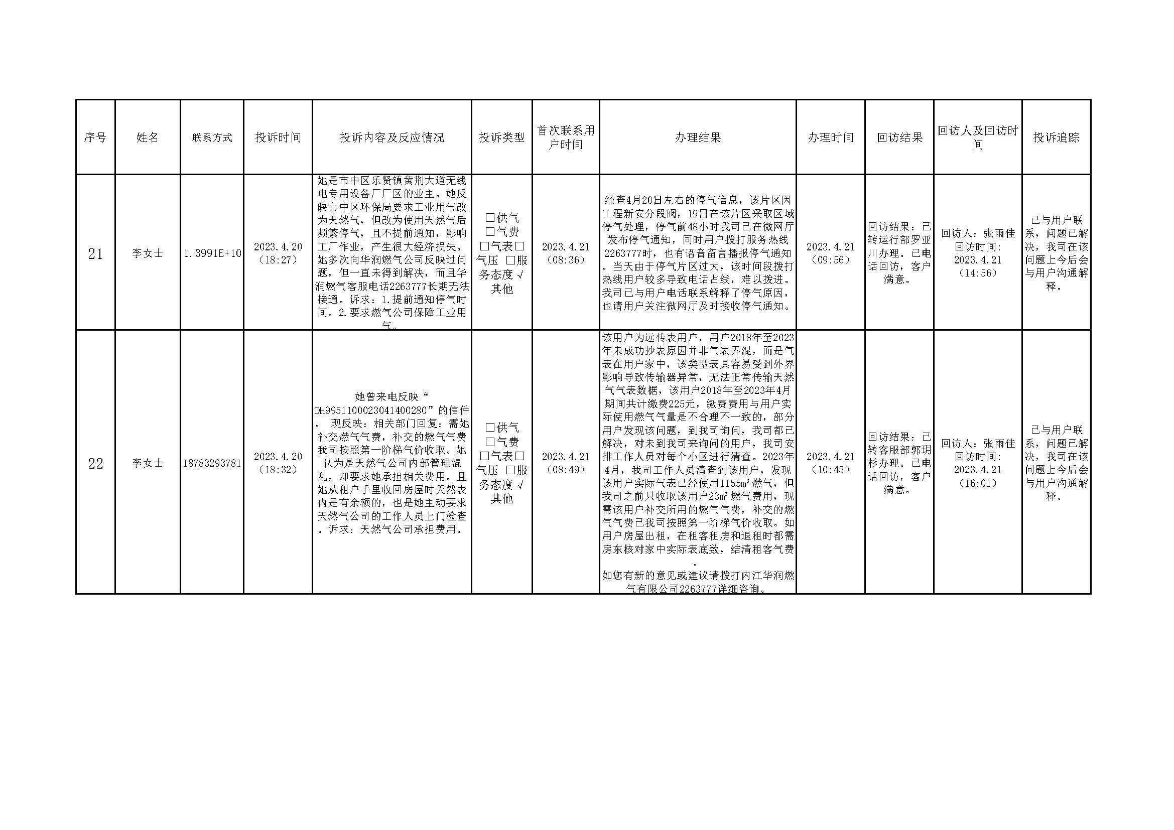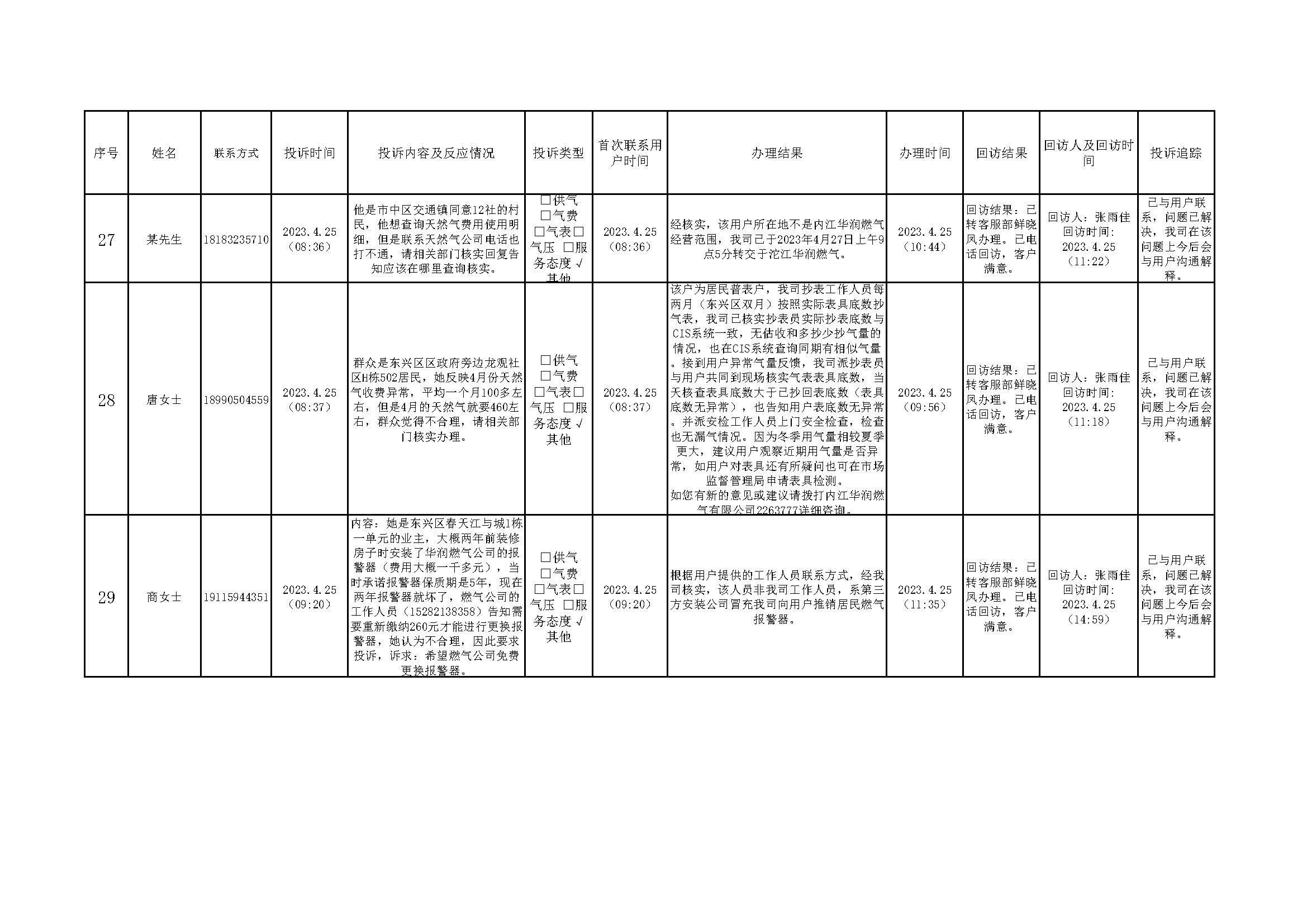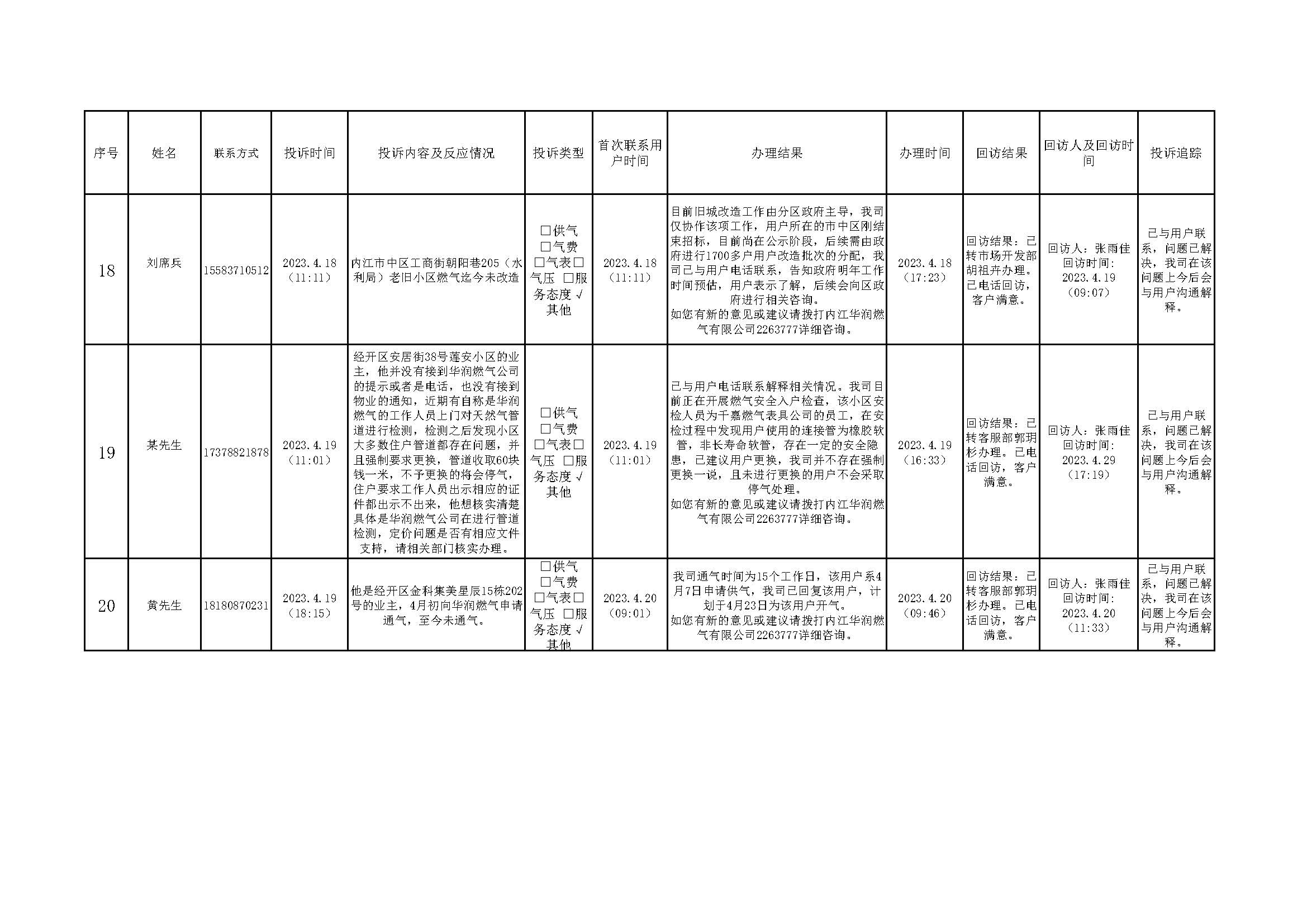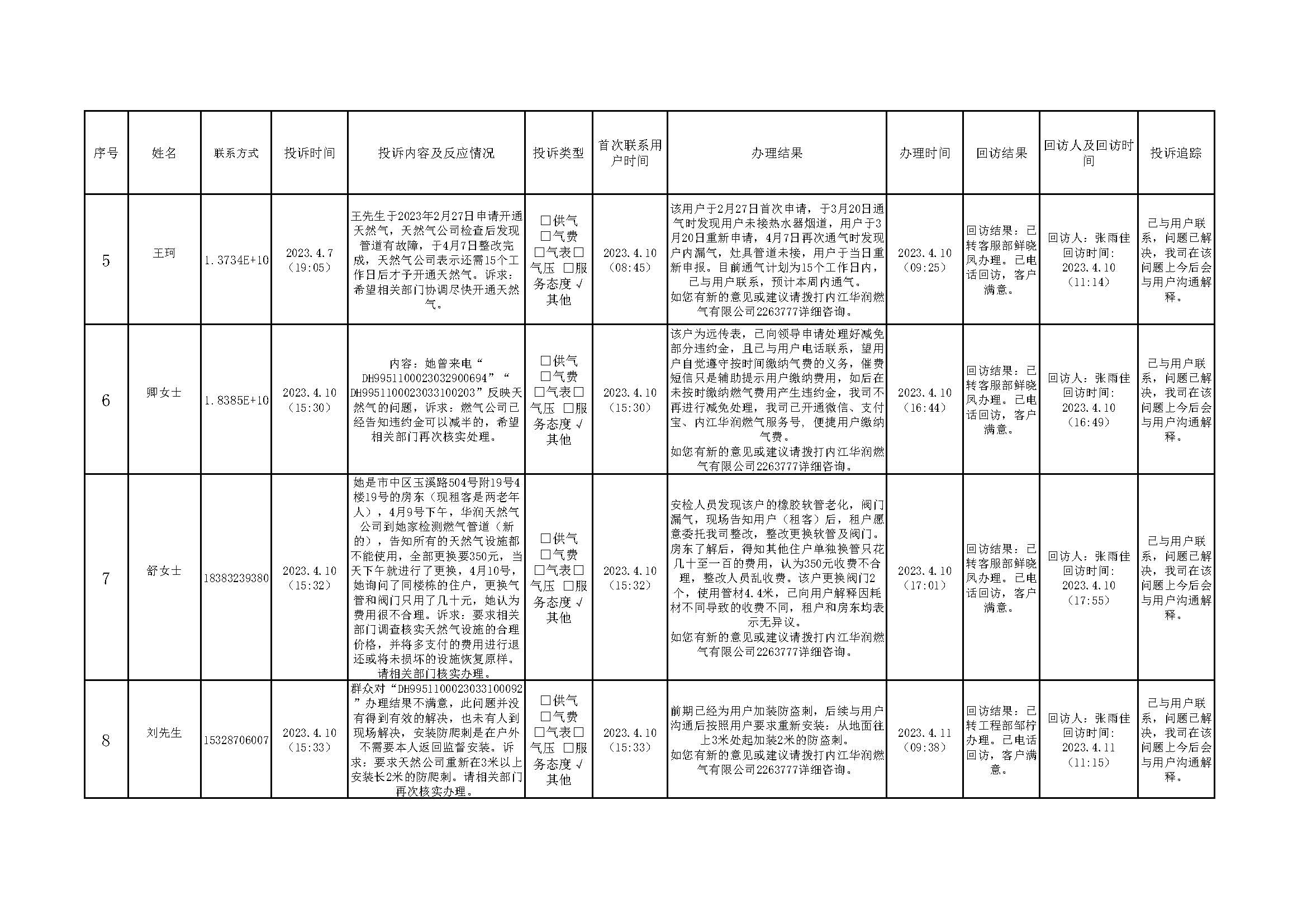 2023年4月投訴辦理及回訪情況