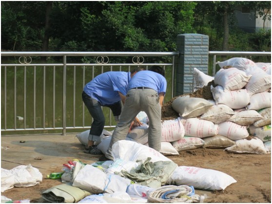 7月11日晚12時開始,內(nèi)江地區(qū)開始普降大雨,防汛形式嚴峻,總經(jīng)理王秋虎到配氣站視察水位并做出重要指示,以最快的速度增加配氣站防汛設(shè)施確保場站內(nèi)安全。7月12日早上2時開始,雨勢逐漸減弱,配氣站防汛小組值班人員每三十分鐘進行一次水位勘察,水位上漲速度緩慢,至12日上午11時,水位距堡坎保持在0.50米左右。同時公司于12日上午增置2000只沙包,進一步確保配氣站內(nèi)安全。截止12日下午6時水位距堡坎保持在0.50米位置。