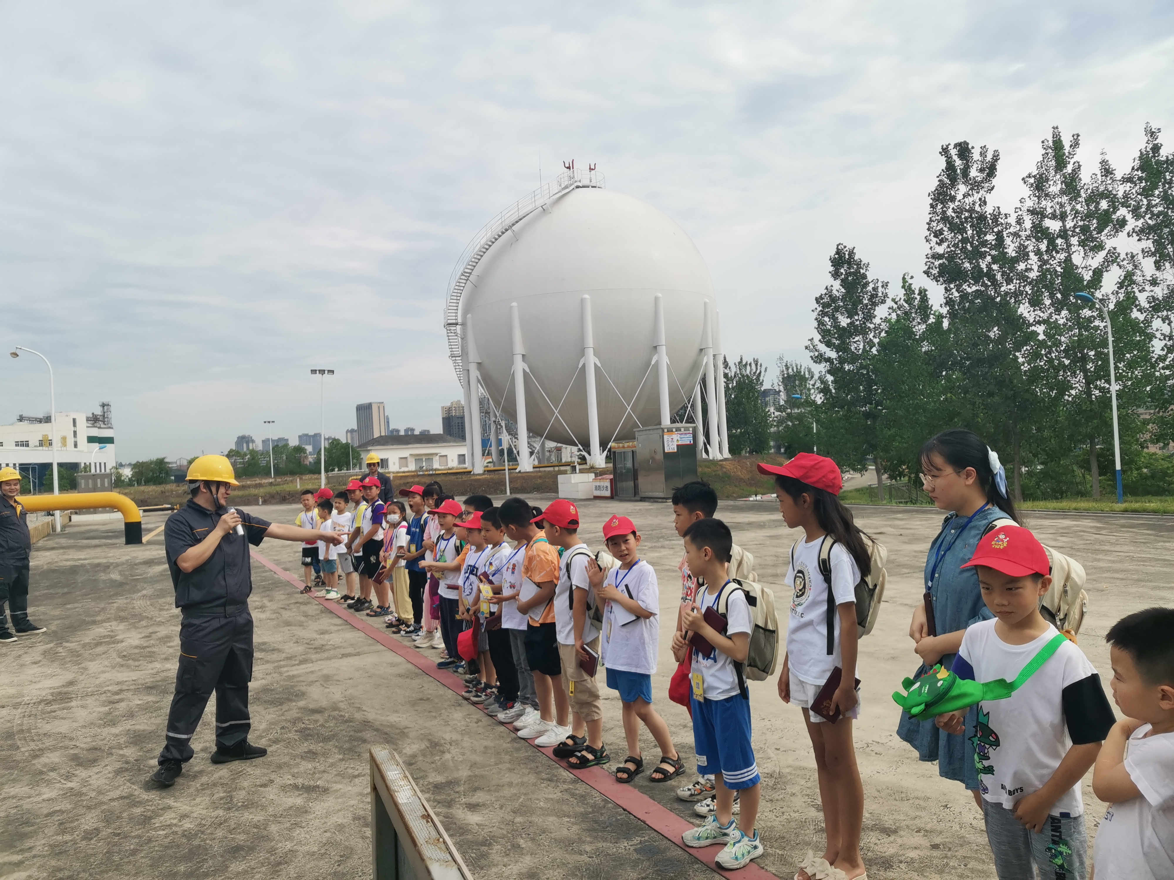 活動當(dāng)天,來自內(nèi)江市不同小學(xué)、不同年級的三十位小記者們穿著純棉衣服,在場站工作人員的指導(dǎo)下觸摸了靜電釋放裝置,消除靜電后進入了城西儲配站。