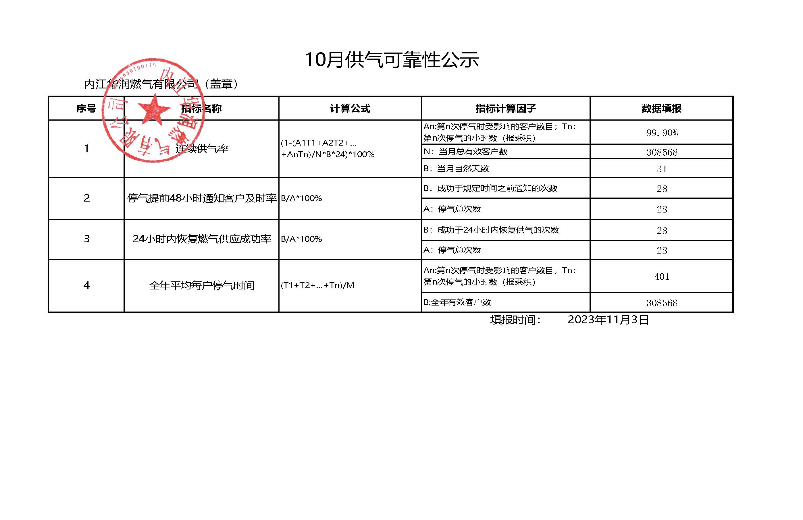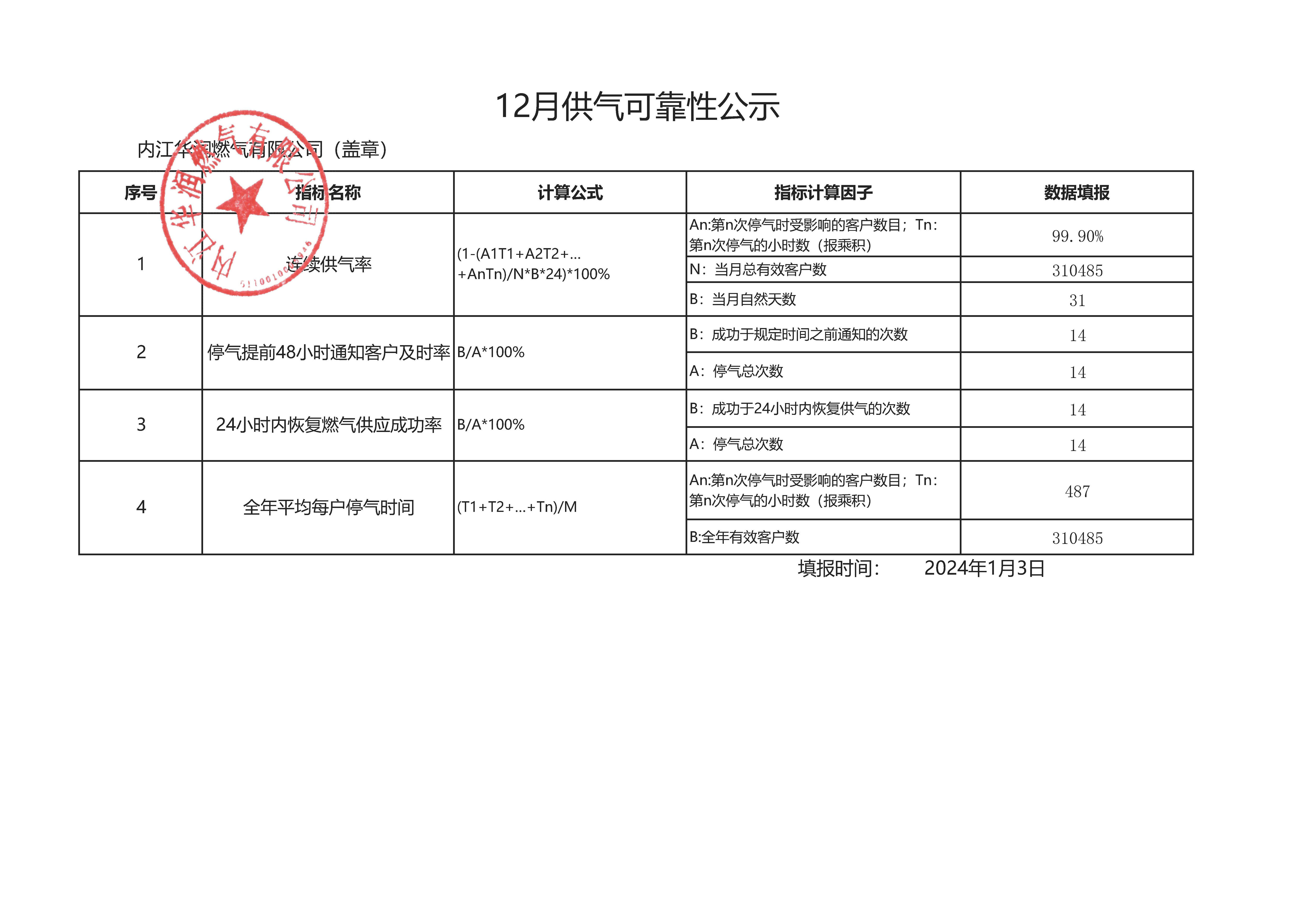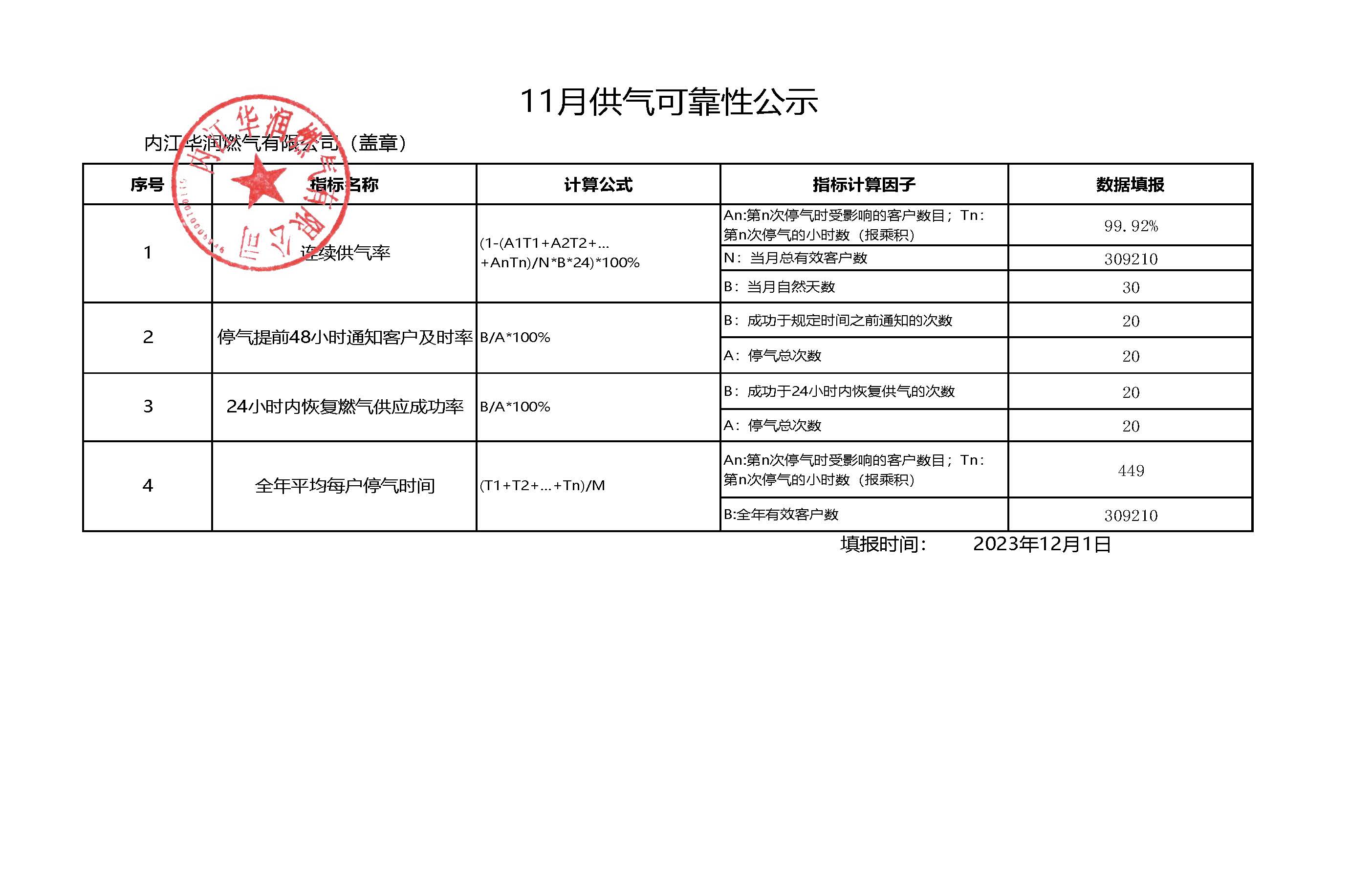 2023年四季度供氣可靠性公示