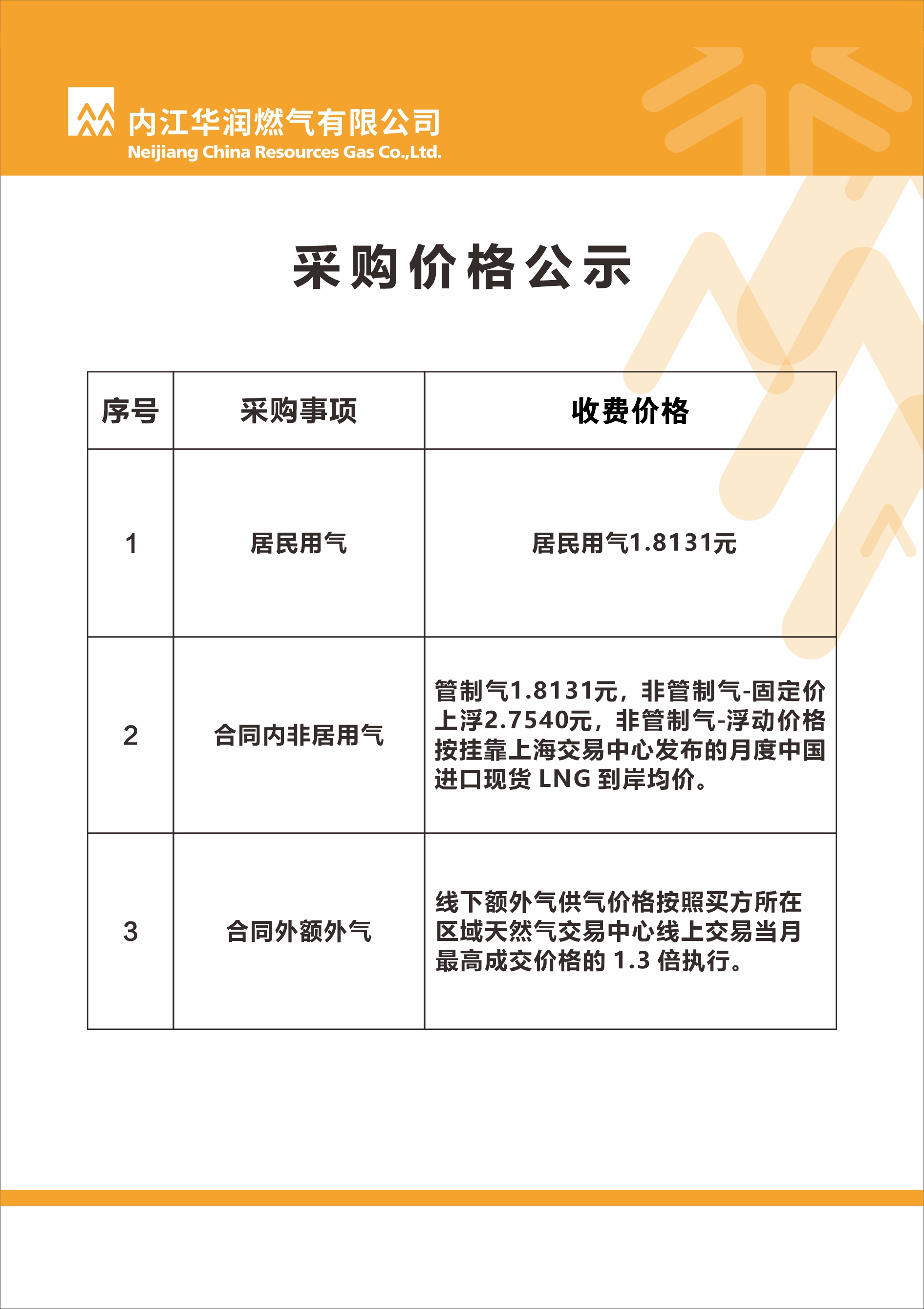 燃?xì)獠少?gòu)價(jià)格公示