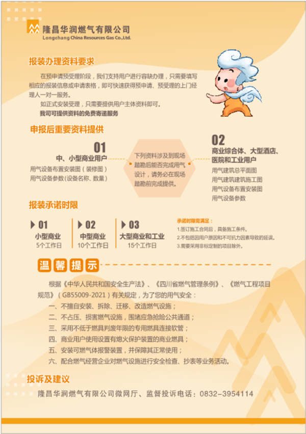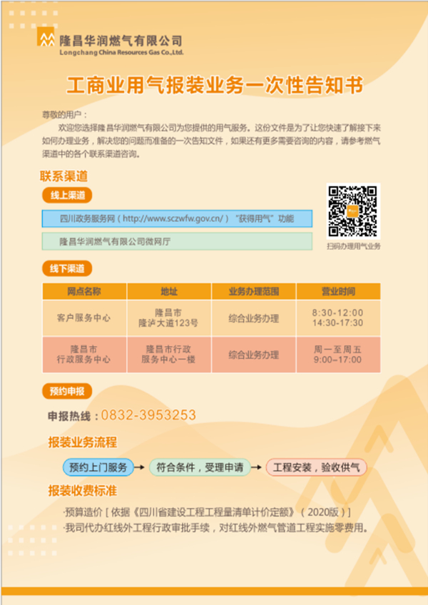 隆昌華潤燃氣有限公司工商業(yè)用氣報裝業(yè)務一次性告知書