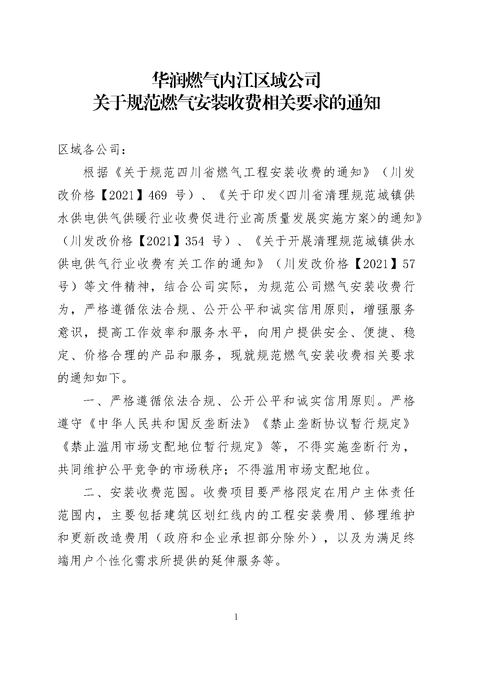 關(guān)于進(jìn)一步規(guī)范燃?xì)獍惭b收費(fèi)相關(guān)要求的通知